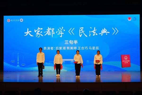 本次文艺汇演由我校大学生法援援助中心具体组织实施,全部节目由我校学生出演,通过情景剧、相声、小品、脱口秀、话剧以及诗朗诵等多种艺术形式,将民法典的精髓和时代价值生动地呈现在舞台上。这些节目不仅展示了学生们的创作才华和表演能力,更在无形中深化了大家对民法典的理解与认知,让民法典精神根植人们心中。同时,活动借助视频号等新媒体方式,分别以图文直播和视频直播的方式对外进行实时转播,校内外直播收看人次达到万人次以上,扩大了活动的影响面,更多的群众从精彩的文艺表演中学习到了民法典的知识和精神。
