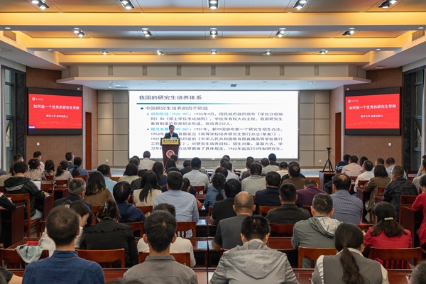 近日,学校胡瑗导师书院第六期培训会在明达楼126会议室举行。中国科学院院士、清华大学教授胡事民作专题报告。校党委副书记丁敢真主持报告会。会议采用线上线下相结合的形式,近500名导师及研究生教育管理人员参加本次培训。